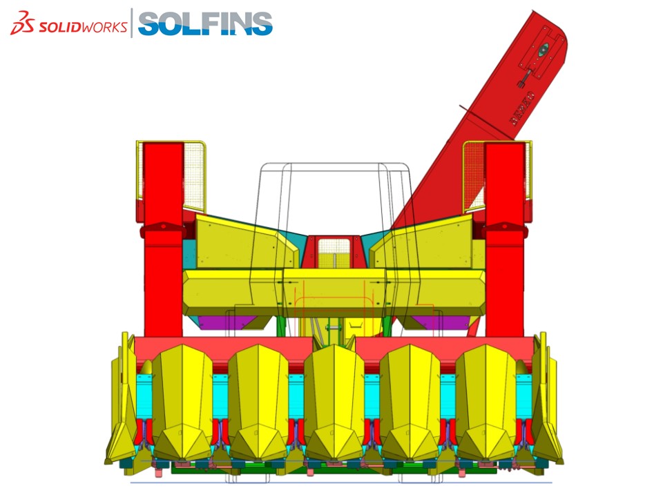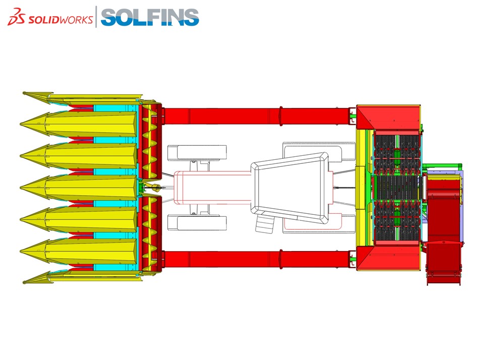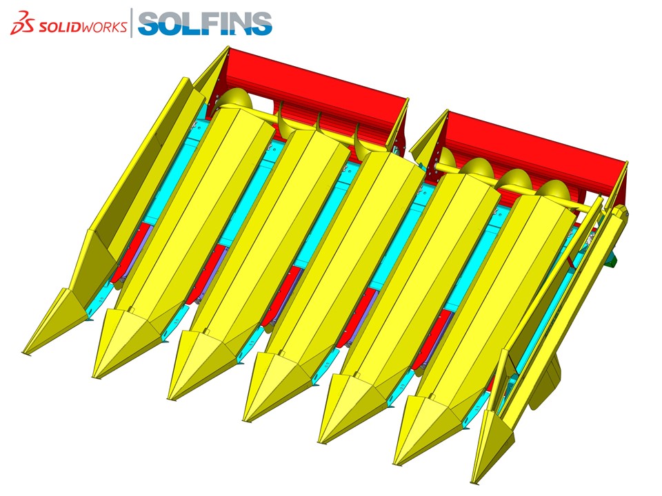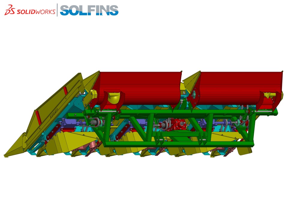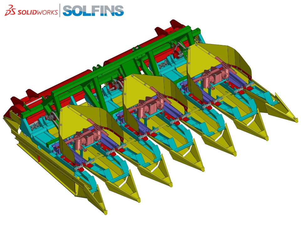 Šestoredni berač kukuruza kompletno projektovan u SolidWorks softveru