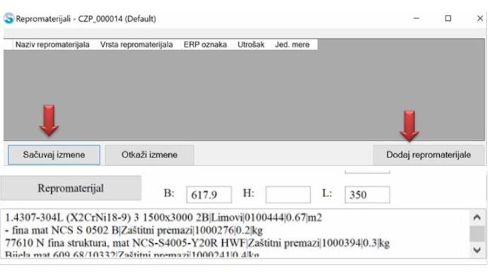 Slika: Prikaz aplikacije za izbor pripremka (repromaterijala)