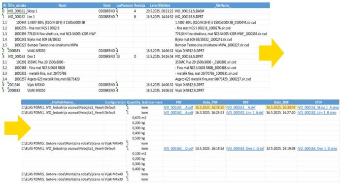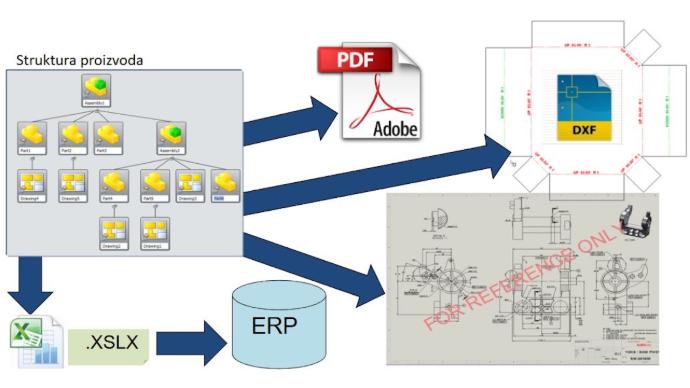 Iz PDM-a se direktno eksportuju sastavnice i pripadajući modeli, čime se eliminiše ručno prepisivanje.