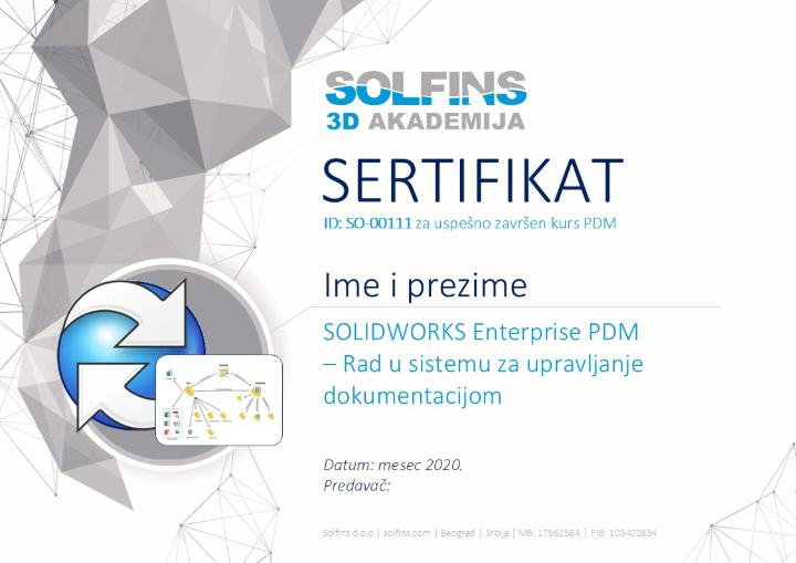 Bez obzira da li imate u firmi implementiran PDM sistem ili želite da iskoristite PDM koji dobijate uz Professional i Premium licence SolidWorks 3D CAD softvera da biste upravljali dokumentacijom i timskim radom, ova obuka pomoći će vam da razumete i efikasno primenite prednosti ovog sistema.
