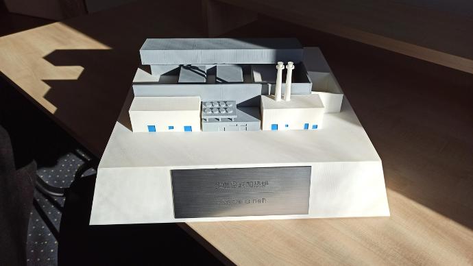 Primenjen je delimični presek - kako bi maketa istovremeno prikazivala i celu halu u kojoj se nalazi novi deo postrojenja, ali i njenu unutrašnjost sa novim pećima, samom trakom za transport proizvoda kroz proizvodnu liniju, itd.