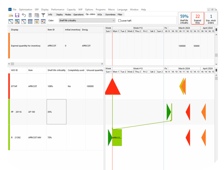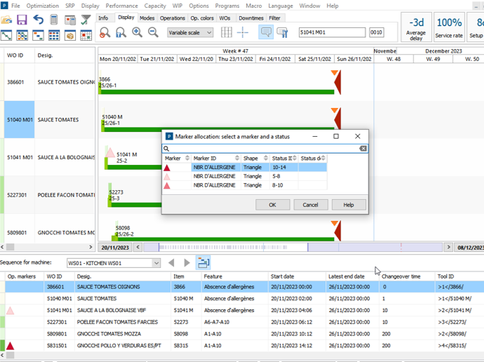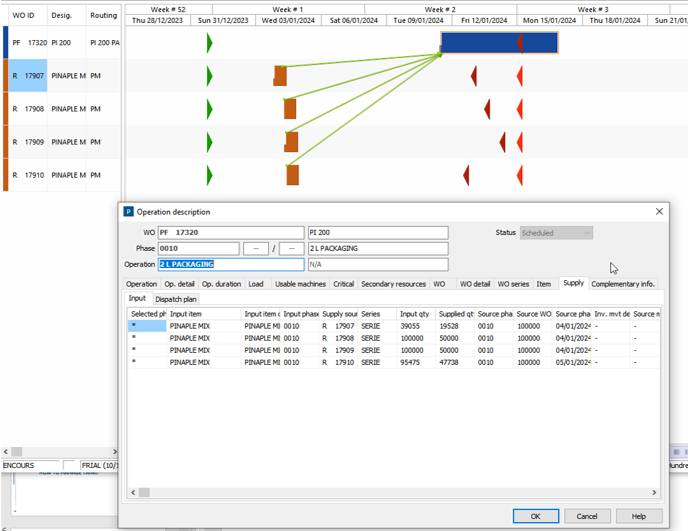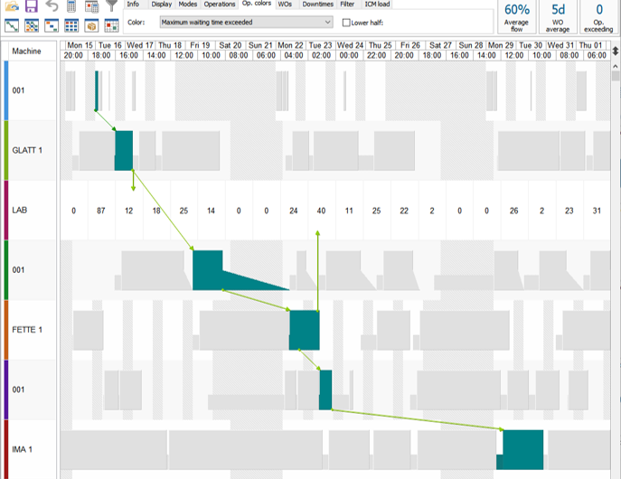 - Various types of link between operations and work orders (min or max lead time, overlap, maximum waiting time, strict synchronization…).