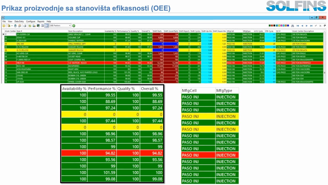 Na ovaj način, Serialized Label Printing, Lot & Serial Tracking, Substitute BOMs, Material Allocation, Variance Reporting, Utilization/OEE i Operator Log In/Out nisu izolovane funkcije, već slagalice koje dopunjuju Production control and reporting sliku: od ciklusa na mašini i logovanja čoveka, preko serijskog broja kutije, do analize varijansi i OEE po ćeliji.