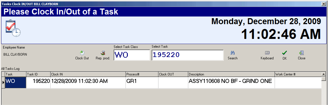 Operator Log In/Out (Time & Task Clock)