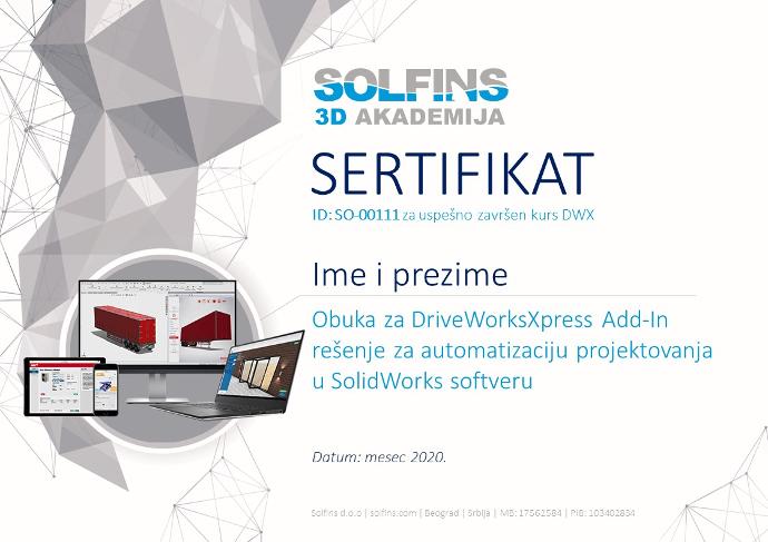Solfins obuka za DriveWorksXpress dodatak na SolidWorks 3D CAD softver