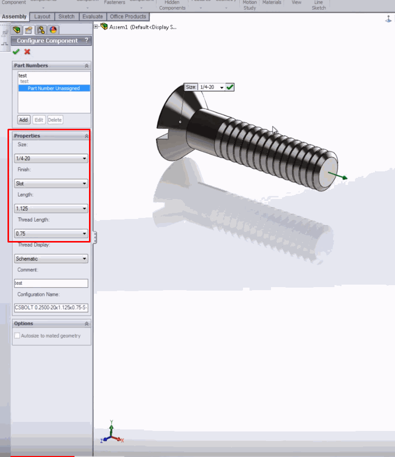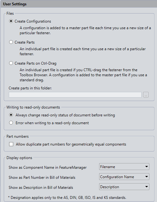 Pri instalaciji softver kreira po jedan master deo u svakom folderu svakog standarda, bez konfiguracija. U ovom koraku se definiše šta će se u pozadini softvera dešavati nakon što prevučemo deo iz baze u sklop a iskoristimo drugačiju veličinu ( npr.dužinu vijka) . Možemo iskoristiti jednu od 3 opcije: