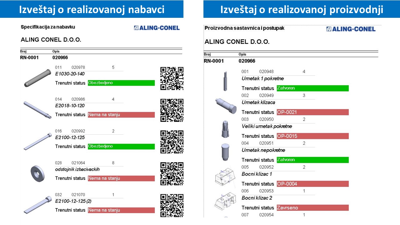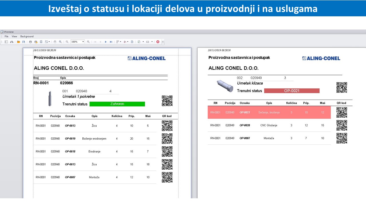 Izveštaj o statusu i lokaciji delova u proizvodnji i na uslugama