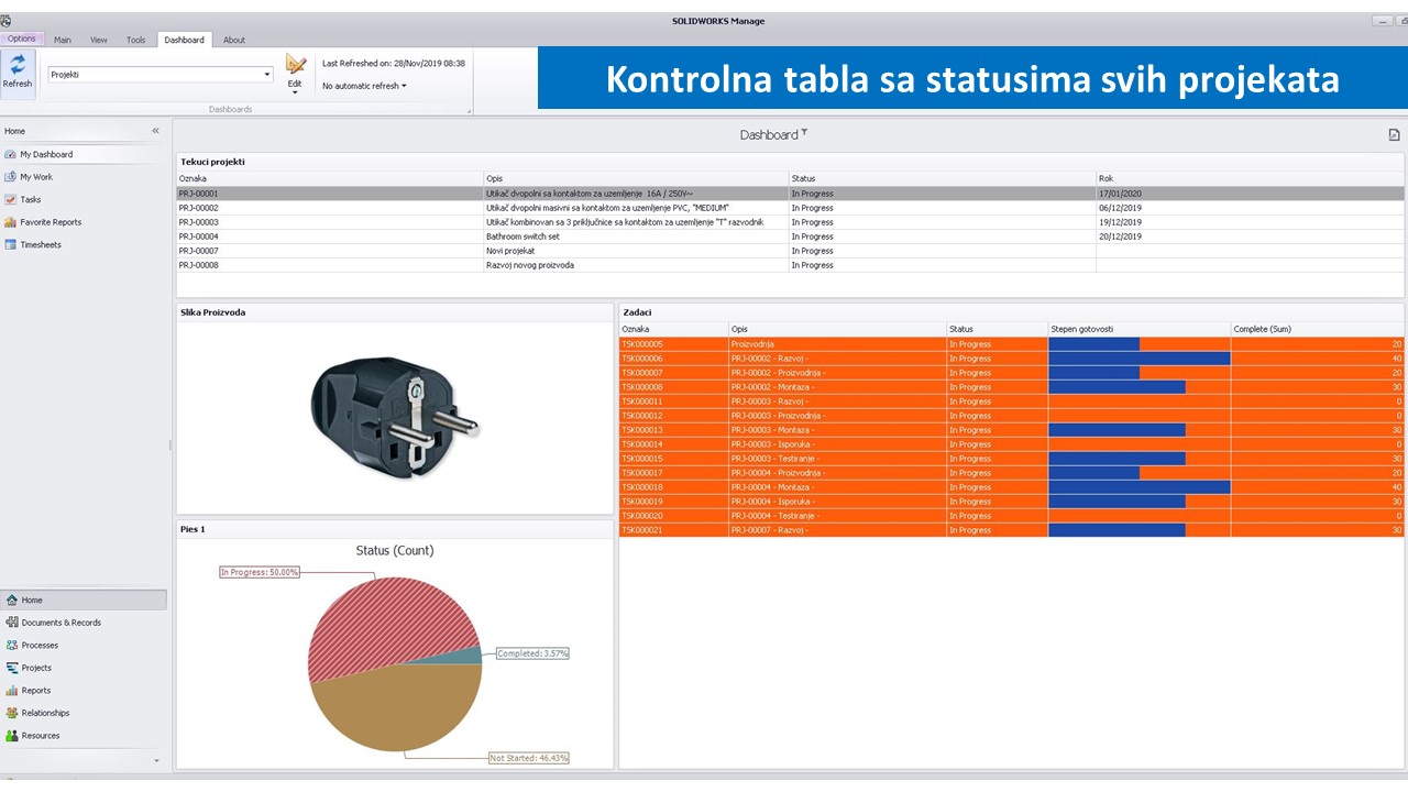 Praćenje statusa svih projekata preko kontrolne table (Dashboard)