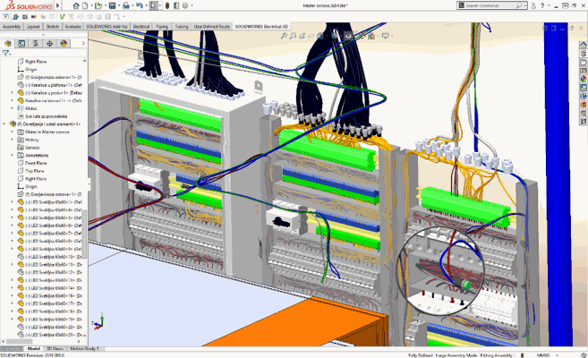 Dispozicija komponenti u 3D prostoru omogućava da se uvek odabere adekvatan razvodni orman i dobije tačna specifikacija dužine provodnika.
