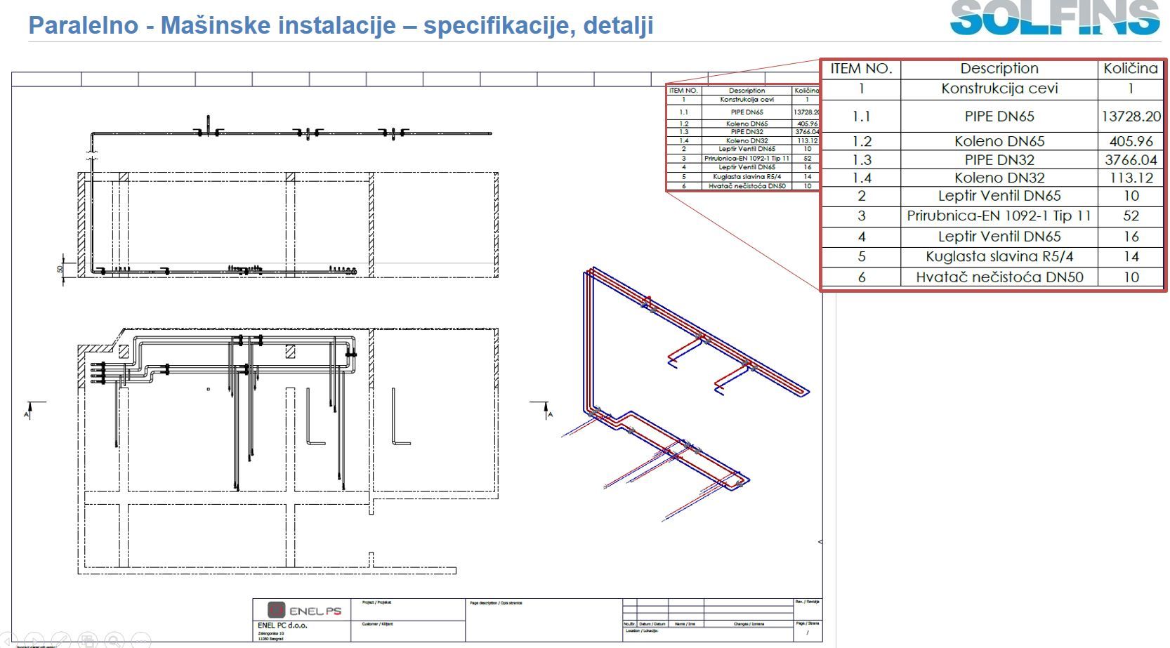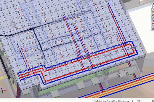 Izrada cevovoda i mašinskih instalacija može se odvija paralelno sa elektroprojektovanjem i definisanjem ostale opreme, tako da na kraju dobijete tačnu specifikaciju opreme potrebne za datu instalaciju bez kolizija u prostoru.