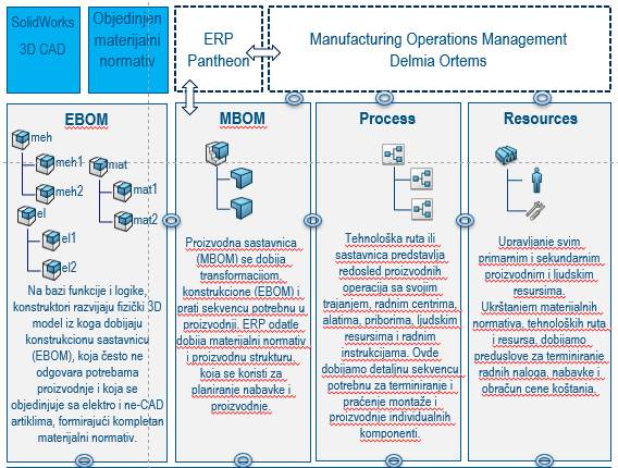Delmia ORTEMS rešava ovu nedoumicu kao pouzdan Dassault Systemes softver koji uzme vaše podatke, prepakuje i prosledi za proizvodnju, a zatim vrati potrebne informacije u ERP onako kako vi želite.