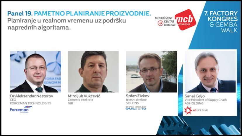 - učešće na Panelu 19. u Sali 3 od 14:45 posvećenom pametnom planiranju proizvodnje u realnom vremenu, gde će ispred Solfinsa govoriti izvršni direktor Srđan Živkov